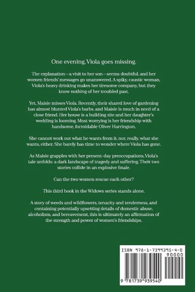 One evening, Viola goes missing. The explanation-a visit to her son-seems doubtful and her women friends' messages go unanswered. A spiky, caustic woman, Viola's heavy drinking makes her tiresome company, but they know nothing of her troubled past. Yet, Maisie misses Viola. Recently, their shared love of gardening has almost blunted Viola's barbs, and Maisie is much in need of a close friend. Her house is a building site, her daughter's wedding is looming. Most worrying is her friendship with handsome, formidable Oliver Harrington. She cannot work out what he wants from it, nor, really, what she wants, either. She barely has time to wonder where Viola has gone. As Maisie grapples with her present-day preoccupations, Viola's tale unfolds: a dark landscape of tragedy and suffering. Their two stories collide in an explosive finale. Can the two women rescue each other? This third book in the Widows series stands alone. A story of weeds and wildflowers, tenacity and tenderness, and containing potentially upsetting details of domestic abuse, alcoholism, and bereavement, this is ultimately an affirmation of the strength and power of women's friendships.