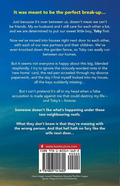 It was meant to be the perfect break-up... Just because it's over between us, doesn't mean we can't be friends. My ex-husband and I still care for each other a lot, and we are determined to put our sweet little boy, Toby first. Now we've moved into houses right next door to each other, with each of our new partners and their children. We've even knocked down the garden fence, so Toby can easily run between our homes. But it seems not everyone is happy about this big, blended stepfamily. I try to ignore the viciously-worded note in the 'new home' card, the red pen scrawled through my divorce paperwork, and the day I find myself locked into my house, all the keys suddenly missing... But I can't pretend it's all in my head when a false accusation is made against me that could destroy my life - and Toby's - forever. Someone doesn't like what's happening under these two neighbouring roofs. What they don't know is that they're messing with the wrong person. And that hell hath no fury like the wife next door... A completely unputdownable, jaw-on-the-floor psychological thriller for fans of Girl on the Train, Gone Girl and The Couple at No.9. Readers love Rona Halsall: 'OMG... Incredible... Once I started, I couldn't put down and simply had to read in one sitting... I loved this fast-paced, captivating thriller and would happily give it more than five stars if I could... One of my favourite reads of this year.' Nicki's Life of Crime ¿¿¿¿¿ 'Wow!!!!... An absolutely fantastic unputdownable psychological thriller... It kept me on the edge of my seat and then in the edge of my bed until late at night as I just could not put it down!!!' Bookworm86 ¿¿¿¿¿ 'OH MY DAYS!! I mean seriously OH MY DAYS! Yes, I have to shout this! This book has blown me completely away... As soon as you open the book you are hurtling so fast that you need a minute to take a breath... My head is still spinning from it all! Blinding!' Zooloo's Book Diary ¿¿¿¿¿ 'ABSOLUTELY FREAKING BRILLIANT!!' Book Reviews by Shalini ¿¿¿¿¿ 'Loved, loved, loved it!!!... A gripping, edge of your seat read to keep us guessing right up until the end!!... The plot twist was goooood!' NetGalley reviewer ¿¿¿¿¿ 'I was on the edge of my seat and through bleary eyes, I read this in one sitting...' Once Upon A Time Book Blog ¿¿¿¿¿