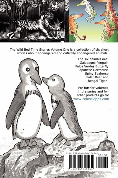 ""The Wild Bed Time Stories"" Volume One is a collection of six short stories about endangered and critically endangered animals that not only conveys a moral to children but also seeks to endear these animals to children. We shudder at the thought of a world where to see or discover a Tiger, Elephant or Rhino, you have to go to Wikipedia. Hopefully this book will place these animals firmly in the hearts and minds of the children of today who will grow into the adults that tomorrow may decide their fates. This first volume contains: Galapagos Penguin Spiny Seahorse Japanese Dormouse Palos Verdes Butterfly Polar Bear and Bengal Tiger. To find out more about upcoming volumes please go to our website: www.colossiapps.com