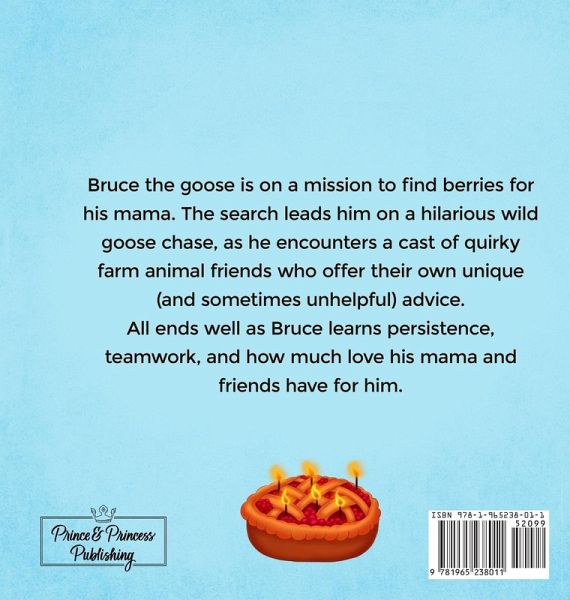 Join Bruce the goose on a hilarious adventure as he embarks on a quest to find berries for his mama's special recipe. But Bruce soon discovers that finding berries isn't as easy as it seems! With the help of his farm animal friends, Bruce learns valuable lessons about patience, perseverance, and the sweet surprises that await when you least expect them. This charming story is filled with: Playful Humor: Bruce's silly antics and misunderstandings will have young readers giggling with delight. Adorable Characters: From Angus the Cow to Shelly the Turtle, each animal brings a unique personality to the story. Heartwarming Themes: Bruce's birthday celebration highlights the importance of family, friendship, and the joy of sharing. Perfect for: Parents and caregivers seeking a fun and engaging story to share with their little ones. Children ages 4-8 who love animals, birthdays, and silly adventures. Teachers and librarians looking for heartwarming read-alouds to promote kindness and laughter. Get ready for a wild goose chase filled with laughter, surprises, and a delicious birthday ending!