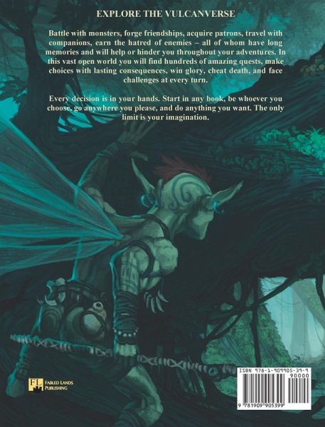 Arcadia. The garden of the gods of Olympus. Once they walked its sylvan paths, sipping ambrosia, drinking the wines of Dionysus, and filling the arboreal groves with their laughter. Satyrs and centaurs gambolled in the sunlit groves, sprites and dryads tended to the trees and flowers. Even mortals, those chosen of the gods, enjoyed the revels. Everywhere life blossomed with joyous abandon. But Pan plays his pipes no more, Artemis hunts not in the deep forests-green, dryads and nymphs dance no longer in dappled moonlit glades to the music of the spheres. Silence reigns over the weed-infested garden walkways. Ancient trees, long untended, clog the forest trails, roots rise up from the ground to topple the statues, fountains and sundials, cracking open the conservatories and summer houses. The great rivers, babbling brooks and simple streams have long since dried up, nothing sleeps in their beds now but desiccated earth and bleached bones. Yet what is to be done? The gods sleep, so it must be the mortals, feeble though they are, pitiful even, to whom the task must fall. Who can restore the wild woods to their glorious, arboreal splendour? Who can rebuild Arcadia and wake the sleeping gods? Who but you? * * * As you explore the Vulcanverse you will forge friendships, meet companions, make enemies - all of whom have long memories and will help or hinder you throughout your adventures. In this vast open world you will find hundreds of amazing quests, make choices with lasting consequences, win glory, cheat death, and face challenges at every turn. Every decision is in your hands. Start in any book, be whoever you choose, go anywhere you please, and do anything you want. The only limit is your imagination.
