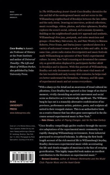 In The Williamsburg Avant-Garde Cisco Bradley chronicles the rise and fall of the underground music and art scene in the Williamsburg neighborhood of Brooklyn between the late 1980s and the early 2010s. Drawing on interviews, archival collections, musical recordings, videos, photos, and other ephemera, Bradley explores the scene's social, cultural, and economic dynamics. Building on the neighborhood's punk DIY approach and aesthetic, Williamsburg's free jazz, postpunk, and noise musicians and groups---from Mary Halvorson, Zs, and Nate Wooley to Matana Roberts, Peter Evans, and Darius Jones---produced shows in a variety of unlicensed venues as well as in clubs and cafes. At the same time, pirate radio station free103point9 and music festivals made Williamsburg an epicenter of New York's experimental culture. In 2005, New York's rezoning act devastated the community as gentrification displaced its participants farther afield in Brooklyn and in Queens. With this portrait of Williamsburg, Bradley not only documents some of the most vital music of the late twentieth and early twenty-first centuries; he helps readers better understand the formation, vibrancy, and life span of experimental music and art scenes everywhere.