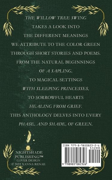 The Willow Tree Swing takes a look into the different meanings we attribute to the color green through short stories and poems. From the beginnings of a sapling, to magical settings with sleeping princesses, to sorrowful hearts healing from grief. This anthology delves into every phase, and shade, of green.