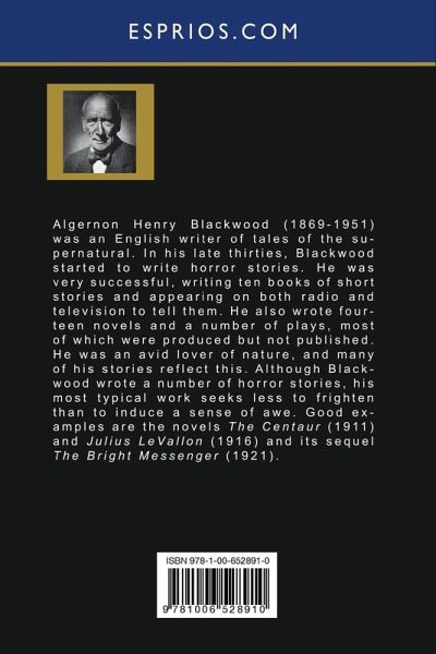 Algernon Henry Blackwood (1869-1951) was an English writer of tales of the supernatural. In his late thirties, Blackwood started to write horror stories. He was very successful, writing ten books of short stories and appearing on both radio and television to tell them. He also wrote fourteen novels and a number of plays, most of which were produced but not published. He was an avid lover of nature, and many of his stories reflect this. Although Blackwood wrote a number of horror stories, his most typical work seeks less to frighten than to induce a sense of awe. Good examples are the novels The Centaur (1911) and Julius LeVallon (1916) and its sequel The Bright Messenger (1921).
