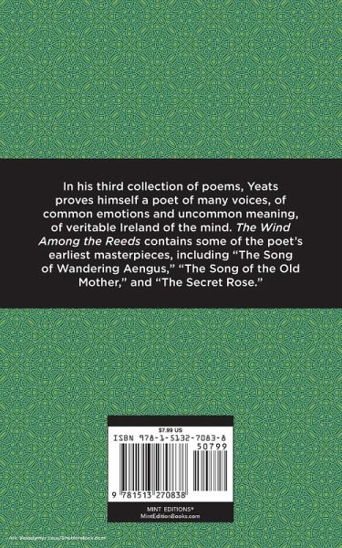 The Wind Among the Reeds (1899) is a collection of poems and plays by W.B. Yeats. Containing many of the poet's early important works, The Wind Among the Reeds provides a rich sampling of Yeats' poems, illuminating his influence on the Celtic Twilight, a late-nineteenth century movement to revive the myths and traditions of Ancient Ireland, while charting his developing sense of the poet's place in history and a changing world. "The Song of Wandering Aengus" dramatizes aesthetic and romantic longing. The poem follows a man with "a fire...in [his] head" who peels "a hazel wand," hooks it with a berry, and catches himself "a little silver trout." Satisfied, he returns home to light a fire and cook himself a meal of fresh fish when, suddenly, the trout transforms into "a glimmering girl / With apple blossom in her hair." Haunted by her beauty, Aengus wanders the "hollow lands and hilly lands" in search of the girl, leaving his home and forsaking the promise of hard-earned comfort for the hope and hunger of vision . "The Song of the Old Mother," a deceptively simple lyric reminiscent of William Blake's Songs of Innocence and of Experience, is a brief meditation on the life of an elderly domestic worker. Rising at dawn, she ensures that "the seed of the fire flicker and glow," preparing the home for the day ahead while "the young lie long and dream in their bed" with no sense of the nature of work. The Wind Among the Reeds, Yeats' third collection of poems, introduces some of the poet's most enduring characters and personas, including Michael Robartes and Red Hanrahan, who dramatize for poet and reader the moods and minds which move a creative spirit. This edition of W.B. Yeats's The Wind Among the Reeds is a classic of Irish literature reimagined for modern readers. Since our inception in 2020, Mint Editions has kept sustainability and innovation at the forefront of our mission. Each and every Mint Edition title gets a fresh, professionally typeset manuscript and a dazzling new cover, all while maintaining the integrity of the original book. With thousands of titles in our collection, we aim to spotlight diverse public domain works to help them find modern audiences. Mint Editions celebrates a breadth of literary works, curated from both canonical and overlooked classics from writers around the globe.