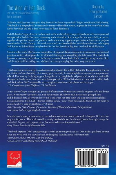 "May the road rise up to meet you. May the wind be always at your back" begins a traditional Irish blessing. This book is a biography of a woman who immersed herself in nature, inspired by her love of the planet Earth, for which she had a deep reverence and fierce dedication. Deb Hubsmith's legacy lives on in these stories of how she helped change the landscape of human-powered transportation both in her own community and nationwide. She brought her uncanny ability to weave together the perfect tapestry of political and community support to get major infrastructure projects completed in Marin County. Her work continued to expand with her crucial contribution to bringing Safe Routes to School from a single school in the San Francisco Bay Area to schools in all fifty states. Outside of her work, Deb's was an inspired life of yoga and dance, community involvement, and spiritual practices, which helped guide her in ultimately letting go of everything she held dear. This book sheds light on her courage and resilience in facing a terminal illness. Indeed, the road did rise up to meet Deb, and the wind held her with grace, wisdom, and beauty, carrying her to her very last breath.