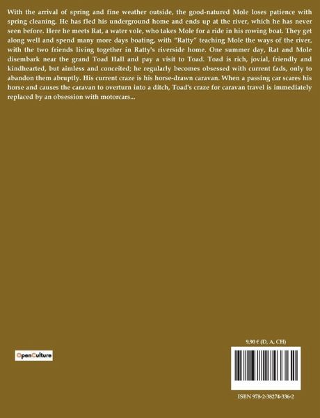 With the arrival of spring and fine weather outside, the good-natured Mole loses patience with spring cleaning. He has fled his underground home and ends up at the river, which he has never seen before. Here he meets Rat, a water vole, who takes Mole for a ride in his rowing boat. They get along well and spend many more days boating, with ¿Ratty¿ teaching Mole the ways of the river, with the two friends living together in Ratty's riverside home. One summer day, Rat and Mole disembark near the grand Toad Hall and pay a visit to Toad. Toad is rich, jovial, friendly and kindhearted, but aimless and conceited; he regularly becomes obsessed with current fads, only to abandon them abruptly. His current craze is his horse-drawn caravan. When a passing car scares his horse and causes the caravan to overturn into a ditch, Toad's craze for caravan travel is immediately replaced by an obsession with motorcars...