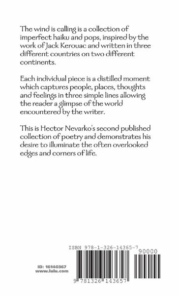 The wind is calling is a collection of imperfect haiku and pops, inspired by the work of Jack Kerouac and written in three different countries on two different continents. This is Hector Nevarko's second published collection of poetry and demonstrates his desire to illuminate the often overlooked edges and corners of life.