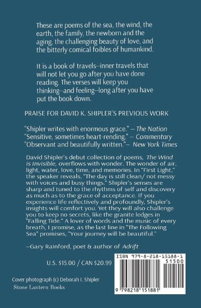 These are poems of the sea, the wind, the earth, the family, the aging, the challenging beauty of love, and the bitterly comical foibles of humankind. They are vividly descriptive of nature and encoded with allegory. Each poem takes you by the hand into a crystal story of striving or failure, of ecstasy or pain, and leads you through a vast or miniature landscape of yearning, fear, and comfort. It is a book of travels--inner travels that will not let you go after you have done reading. The verses will keep you thinking--and feeling--long after you have put the book down.