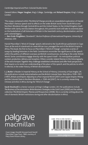 Harold Macmillan's 'Wind of Change' speech, delivered to the South African parliament in Cape Town at the end of a landmark six-week African tour, presaged the end of the British Empire in Africa. This book, the first to focus on Macmillan's 'Wind of Change', comprises a series of essays by leading historians in the field.