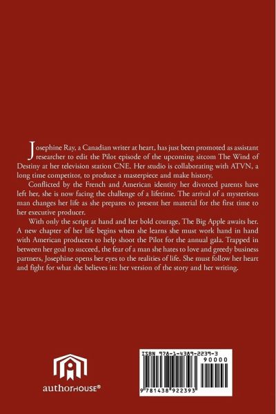 Josephine Ray, a Canadian writer at heart, has just been promoted as assistant researcher to edit the Pilot episode of the upcoming sitcom The Wind of Destiny at her television station CNE. Her studio is collaborating with ATVN, a long time competitor, to produce a masterpiece and make history. Conflicted by the French and American identity her divorced parents have left her, she is now facing the challenge of a lifetime. The arrival of a mysterious man changes her life as she prepares to present her material for the first time to her executive producer. With only the script at hand and her bold courage, The Big Apple awaits her. A new chapter of her life begins when she learns she must work hand in hand with American producers to help shoot the Pilot for the annual gala. Trapped in between her goal to succeed, the fear of a man she hates to love and greedy business partners, Josephine opens her eyes to the realities of life. She must follow her heart and fight for what she believes in: her version of the story and her writing.