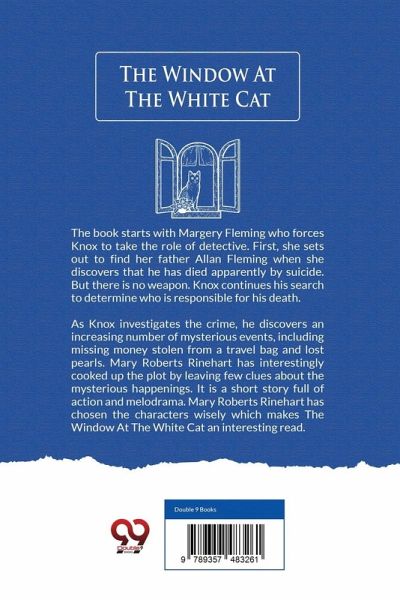 The book starts with Margery Fleming who forces Knox to take the role of detective. First, she sets out to find her father Allan Fleming when she discovers that he has died apparently by suicide. But there is no weapon. Knox continues his search to determine who is responsible for his death. As Knox investigates the crime, he discovers an increasing number of mysterious events, including missing money stolen from a travel bag and lost pearls. Mary Roberts Rinehart has interestingly cooked up the plot by leaving few clues about the mysterious happenings. It is a short story full of action and melodrama. Mary Roberts Rinehart has chosen the characters wisely which makes The Window At The White Cat an interesting read.
