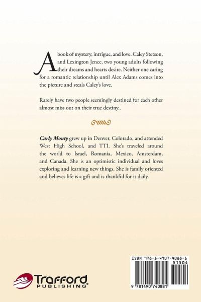 A book of mystery, intrigue, and love. Caley Stetson, and Lexington Jence, two young adults following their dreams and hearts desire. Neither one caring for a romantic relationship until Alex Adams comes into the picture and steals Caley's love. Rarely have two people seemingly destined for each other almost miss out on their true destiny..