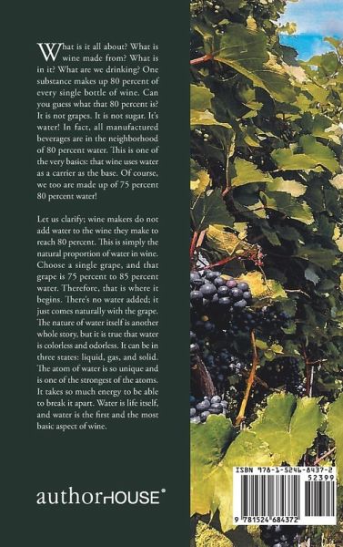 What is it all about? What is wine made from? What is in it? What are we drinking? One substance makes up 80 percent of every single bottle of wine. Can you guess what that 80 percent is? It is not grapes. It is not sugar. It's water! In fact, all manufactured beverages are in the neighborhood of 80 percent water. This is one of the very basics: that wine uses water as a carrier as the base. Of course, we too are made up of 75 percent 80 percent water! Let us clarify; wine makers do not add water to the wine they make to reach 80 percent. This is simply the natural proportion of water in wine. Choose a single grape, and that grape is 75 percent to 85 percent water. Therefore, that is where it begins. There's no water added; it just comes naturally with the grape. The nature of water itself is another whole story, but it is true that water is colorless and odorless. It can be in three states: liquid, gas, and solid. The atom of water is so unique and is one of the strongest of the atoms. It takes so much energy to be able to break it apart. Water is life itself, and water is the first and the most basic aspect of wine.