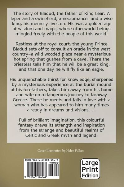 The story of Bladud, the father of King Lear. A leper and a swineherd, a necromancer and a wise king, his memory lives on. His was a golden age of wisdom and magic, where otherworld beings mingled freely with the people of this world. Restless at the royal court, the young Prince Bladud sets off to consult an oracle in the west country - a wild wooded place near a mysterious hot spring that gushes from a cave. There the priestess tells him that he will be a great king, and that one day he will fly like an eagle. When he returns to his father's hill-fort at Trinovantum, Bladud's head is full of magnificent dreams... until trickery entraps him in a loveless marriage. His unquenchable thirst for knowledge, sharpened by a mysterious experience at the burial mound of his forefathers, takes him away from his home and wife on a dangerous journey to faraway Greece. There he meets and falls in love with a woman who has appeared to him many times already in dreams and visions... Full of brilliant imagination, this colourful fantasy draws its strength and inspiration from the strange and beautiful realms of Celtic and Greek myth and legend.