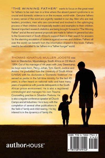 "The Winning Father" wants to focus on the great need for fathers to be real men in a time where the absent parent syndrome is so crucial and domestic violence is on the increase, world-wide . Genuine fathers in every sense of the word are urgently needed in our day. Men who are real, leaders, providers, men who are concerned and involved in the upbringing process of their children, but especially leaders and examples to their children. Several important research statistics are being brought forward in "The Winning Father" and at the end several proposals are made to fathers in general but also to the Government of South Africa to support them in their search for answers for the alarming escalation of violence against women and children. Fathers all over the world can benefit from the information shared in this book. Fathers need to be educated to be fathers in a "father hunger" world.