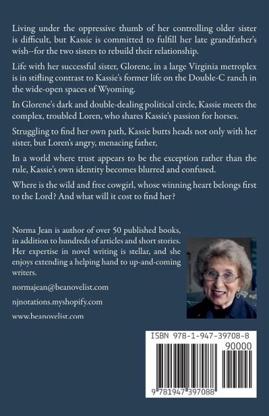 Living under the oppressive thumb of her controlling older sister is difficult, but Kassie is committed to fulfill her late grandfather's wish--for the two sisters to rebuild their relationship. Life with her successful sister, Glorene, in a large Virginia metroplex is in stifling contrast to Kassie's former life on the Double-C ranch in the wide-open spaces of Wyoming. In Glorene's dark and double-dealing political circle, Kassie meets the complex, troubled Loren, who shares Kassie's passion for horses. Struggling to find her own path, Kassie butts heads not only with her sister, but Loren's angry, menacing father, In a world where trust appears to be the exception rather than the rule, Kassie's own identity becomes blurred and confused. Where is the wild and free cowgirl, whose winning heart belongs first to the Lord? And what will it cost to find her?