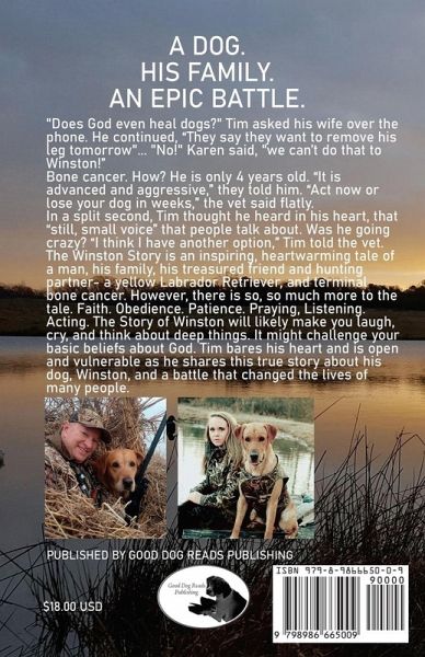 The Winston Story is the heartfelt telling of a family who has been told their pet had weeks to live. Bone Cancer was the diagnosis, and verified by multiple veterinarians. They gave Winston zero chances and at best, a year if Tim and Karen could spend the money to do radiation therapy. The family members are Christians who believe that God Cares about the smallest details in our lives, and that includes our pets. In a strange, but simple way, Tim believed he heard from God, telling him that Winston would live, and decided he would approach the sickness through faith and faith alone. Over the next several months, as he watched the health of his beloved friend and pet wane, he leaned on his faith and began to dive into the miracles of Jesus in his personal studies. Through tears and prayers, fasting, the anointing of oil, and prayers from many friends and family, they held passionately to their faith. This persistent atmosphere of worship and prayer brought about unimaginable things in their lives and after it was all over, a perfect stranger walked up to Tim and told him "The Lord says for you to Write The Story!" This book is about how God cares for us and what we can expect when we cry out to Him in Truth and Spirit! It searches the truths and mysteries about the miraculous and challenges how many believe. It will tug at your heart on many levels, likely causing you to laugh out loud or possibly cry at times. Tim bares his heart and is open and vulnerable as he shares this true story about his dog, Winston, and a battle with K9 Cancer that changed the lives of many people.