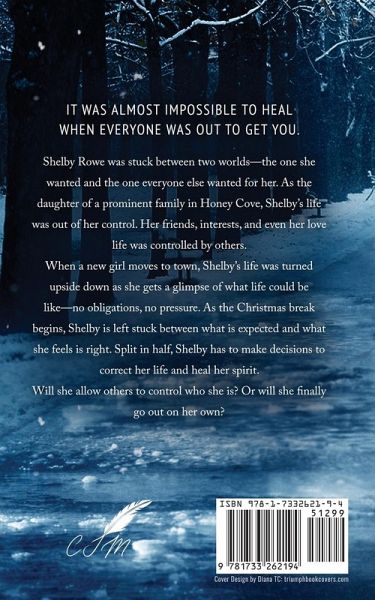 The Winter Heals is book #2 in the Honey Cove series. It is a contemporary romance, coming of age novel. This title is a stand-alone story the follows Shelby Rowe as she finds her place in the world. It was almost impossible to heal when everyone was out to get you. Shelby Rowe was stuck between two worlds-the one she wanted and the one everyone else wanted for her. As the daughter of a prominent family in Honey Cove, Shelby's life was out of her control. Her friends, interests, and even her love life was controlled by others. When a new girl moves to town, Shelby's life was turned upside down as she gets a glimpse of what life could be like-no obligations, no pressure. As the Christmas break begins, Shelby is left stuck between what is expected and what she feels is right. Split in half, Shelby has to make decisions to correct her life and heal her spirit. Will she allow others to control who she is? Or will she finally go out on her own?
