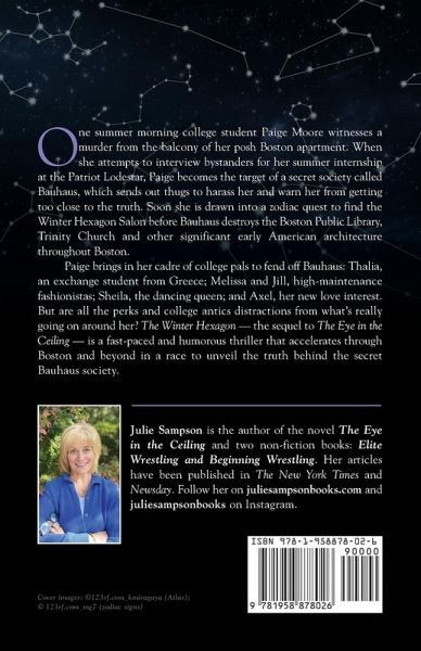 For Paige Moore, a rising sophomore at Kew College, everything begins the morning she steps outside her Boston apartment and observes a construction site accident. When she attempts to interview witnesses for her summer internship at the Patriot Lodestar, Paige becomes the target of an underground operation. And that's when things turn bizarre. Paige had never heard of Bauhaus or the Winter Hexagon, but she is soon on the radar of aggressive thugs who harass her for what the accident victim told her. She gets drawn into a zodiac quest to find the Winter Hexagon Salon before Bauhaus destroys the Boston Public Library, Trinity Church and other significant early American architecture throughout Boston. Meanwhile, Paige shares her impressive internship perks with her college friends: Thalia, an exchange student from Greece, Melissa and Jill, high-maintenance fashionistas, Sheila, the dancing queen, and Axel, her new love interest. But are all the perks and college antics distractions from what's really going on around her? The Winter Hexagon - the sequel to The Eye in the Ceiling - is a fast-paced and humorous thriller that accelerates through Boston and beyond in a race to find the mysterious Winter Hexagon Salon.