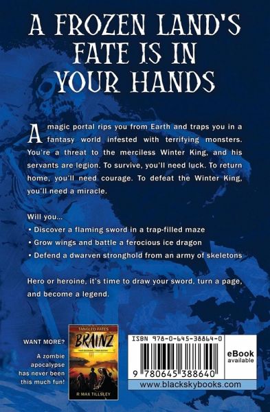 A FROZEN LAND'S FATE IS IN YOUR HANDS A magic portal rips you from Earth and traps you in a fantasy world infested with terrifying monsters. You're a threat to the merciless Winter King, and his servants are legion. To survive, you'll need luck. To return home, you'll need courage. To defeat the Winter King, you'll need a miracle. Will you...Discover a flaming sword in a trap-filled maze Grow wings and battle a ferocious ice dragon Defend a dwarven stronghold from an army of skeletons Hero or heroine, it's time to draw your sword, turn a page, and become a legend. This is a gamebook where your decisions change the outcome of the story. Hopeless moments may turn into thrilling victories, or sensible choices may have terrible consequences. Over 60 possible endings!