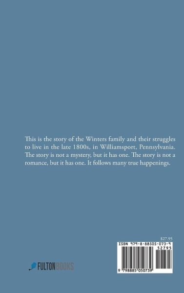 This is the story of the Winters family and their struggles to live in the late 1800s, in Williamsport, Pennsylvania. The story is not a mystery, but it has one. The story is not a romance, but it has one. It follows many true happenings.