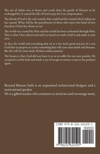 The sin of Adam was so heavy and costly than the goods of Heaven to be exchanged for. It caused the life of God to pay for it as compensation. The blood of God is the only remedy that could heal the wound which Adam sin has caused. What will be the punishment of those who reject this kind of love that Jesus Christ has shown to us? The world was created by Him and the world has been redeemed through Him. This is what I have discovered and it is based on truth; hold it and make it your own. In fact, the world and everything that on it is for man's good and joy. It is not God idea or purpose to create something that will cause man death and diseases. But the will of a man made all these embarrassment. The beauty is that, God did not leave it to us to suffer for our own penalty. He accepted it as His fault and made a way of escape to restore a man to his position again.