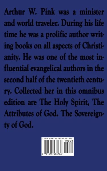 Arthur W. Pink was a minister and world traveler. During his life time he was a prolific author writing books on all aspects of Christianity. He was one of the most influential evangelical authors in the second half of the twentieth century. Collected here in this omnibus edition are The Holy Spirit, The Attributes of God, The Sovereignty of God.