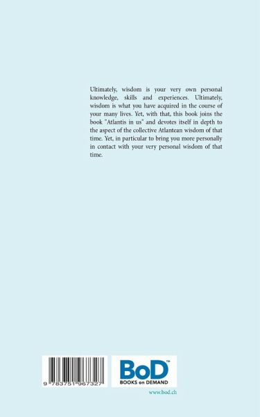 Ultimately, wisdom is your very own personal knowledge, skills and experiences. Ultimately, wisdom is what you have acquired in the course of your many lives. Yet, with that, this book joins the book "Atlantis in us" and devotes itself in depth to the aspect of the collective Atlantean wisdom of that time. Yet, in particular to bring you more personally in contact with your very personal wisdom of that time.