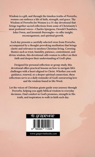 Wisdom is a gift from God, and the book of Proverbs is a wellspring of divine understanding. Proverbs for Daily Life is a 31-day devotional designed to help you deepen your faith, gain insight, and live with the wisdom of God's word. Drawing from the reflections of great Christian thinkers such as Charles Spurgeon, Oswald Chambers, John Owen, and Jeremiah Burroughs, this devotional brings timeless biblical wisdom to modern life. Daily lessons from Proverbs offer a verse each day, followed by a meditation that explores its spiritual significance and practical application. Whether focusing on humility, integrity, patience, or trust in the Lord, these devotionals guide you toward a life aligned with God's truth. Life is filled with uncertainties, but God's wisdom is steadfast. These daily reflections encourage you to seek His guidance in all things, embrace humility, and walk in faith. By applying the lessons of Proverbs, you will find strength, peace, and direction for your spiritual journey. Perfect for personal devotion or group study, this book invites you to immerse yourself in God's wisdom each day. Let the voices of Christian giants illuminate your path, helping you cultivate a heart that listens, learns, and lives according to His word.
