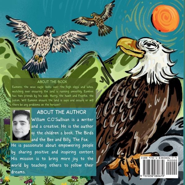 Eamonn, the wise eagle looks over the high cliffs and lakes, watching over ensuring everything is fine. Eamonn has two friends by his side. Harry, the hawk and Frankie, the falcon. Will Eamonn ensure the land is safe and secure or will there be any problems on the horizon? The Two Seagulls, Sally and Silvia are up to no good when they arrive. Will they cause problems? If so, Eamonn and his friends will be there to ensure the day is running smoothly, so the land is peaceful for all animals.
