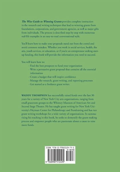 The Wise Guide to Winning Grants provides complete instruction in the research and writing techniques that lead to winning grants from foundations, corporations, and government agencies, as well as major gifts from individuals. The process is described step-by-step with numerous real-life examples in an easy-to-read conversational style. You'll learn how to make your proposals stand out from the crowd and avoid common mistakes. Whether you work in social services, health, the arts, youth services, or education, or if you're an entrepreneur seeking start-up funding, this book will provide the information you need to succeed. You will learn how to: · Find the best prospects to fund your organization · Write a persuasive grant proposal that contains all the essential information · Create a budget that will inspire confidence · Manage the research, grant writing, and reporting processes · Get started as a freelance grant writer.