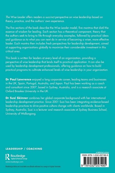 The five sections of the book describe the Wise Leader model, five mantras that distil the essence of wisdom for leading. Each section has a theoretical component, theory that the authors seek to bring to life through everyday examples, followed by practical ideas and guidance as to what you can next do in service of becoming a wiser, more effective leader. Each mantra then includes fresh perspectives for leadership development, aimed at supporting organisations globally to maximize their considerable investment in this critical area.