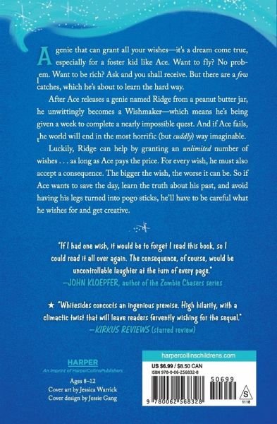 ?Looking for a fantastically fast-paced and funny read? Your wish is granted!? ?Chris Grabenstein, #1 New York Times bestselling author of Escape from Mr. Lemoncello's Library Twelve-year-old Ace's life is about to change in the most unexpected and magical ways?all because of a peanut butter jar. When he opens it, he inadvertently releases a genie named Ridge. Now a Wishmaker, Ace is given a week to complete a seemingly impossible quest, and if he fails the world will end in the most tragic (but cuddly) way imaginable. Luckily, Ridge can help by granting Ace an unlimited number of wishes...as long as Ace is willing to accept the consequences. The bigger the wish, the greater the consequence. So, if Ace wants to avoid having pogo sticks for legs or his clothes turn invisible, he'll have to be careful what he wishes for and get a little creative. Perfect for fans of Dan Gutman and Max Brallier, this new middle grade series by Tyler Whitesides (author of the Janitors series) is a wonderful mix of unpredictable magic, zany humor, and daring adventure. You'll wish it never ends!