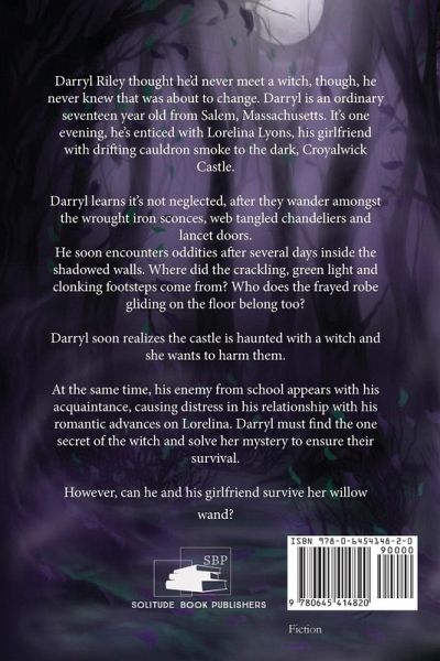 What would you do if a spooky, magical witch was following you and you had nowhere to hide? Darryl Riley thought he'd never meet a witch, though, he never knew that was about to change. Darryl is an ordinary seventeen year old from Salem, Massachusetts. It's one evening, he's enticed with Lorelina Lyons, his girlfriend with drifting cauldron smoke to the dark, Croyalwick Castle. Darryl learns it's not neglected, after they wander amongst the wrought iron sconces, web tangled chandeliers and lancet doors. He soon encounters oddities after several days inside the shadowed walls. Where did the crackling, green light and clonking footsteps come from? Who does the frayed robe gliding on the floor belong too? Darryl soon realizes the castle is haunted with a witch and she wants to harm them. At the same time, his enemy from school appears with his acquaintance, causing distress in his relationship with his romantic advances on Lorelina. Darryl must find the one secret of the witch and solve her mystery to ensure their survival. However, can he and his girlfriend survive her willow wand? The Witch Haunting is for fans of young adult horror books and magical realism novels.