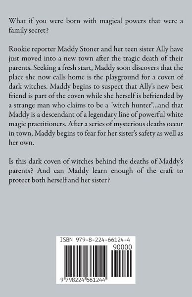 What if you were born with magical powers that were a family secret? Rookie reporter Maddy Stoner and her teen sister Ally have just moved into a new town after the tragic death of their parents. Seeking a fresh start, Maddy soon discovers that the place she now calls home is the playground for a coven of dark witches. Maddy begins to suspect that Ally's new best friend is part of the coven while she herself is befriended by a strange man who claims to be a "witch hunter"...and that Maddy is a descendant of a legendary line of powerful white magic practitioners. After a series of mysterious deaths occur in town, Maddy begins to fear for her sister's safety as well as her own. Is this dark coven of witches behind the deaths of Maddy's parents? And can Maddy learn enough of the craft to protect both herself and her sister?