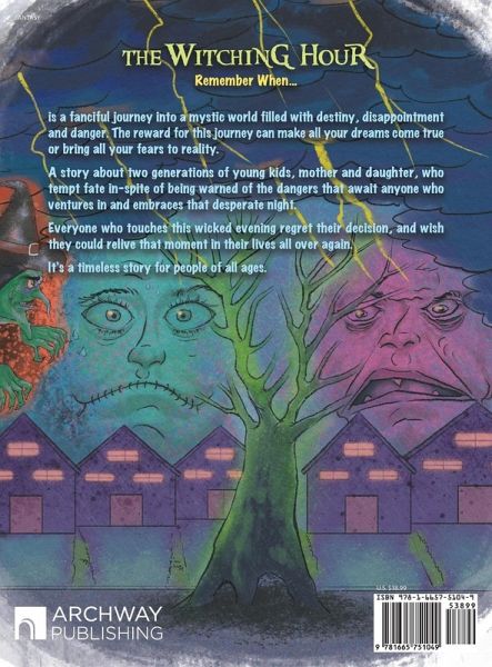 THE WITCHING HOUR - Remember When... is a fanciful journey into a mystic world filled with destiny, disappointment and danger. The reward for this journey can make all your dreams come true or bring all your fears to reality. A story about two generations of young kids, mother and daughter, who tempt fate in-spite of being warned of the dangers that await anyone who ventures in and embraces that desperate night. Everyone who touches this wicked evening regret their decision, and wish they could relive that moment in their lives all over again. It's a timeless story for people of all ages.