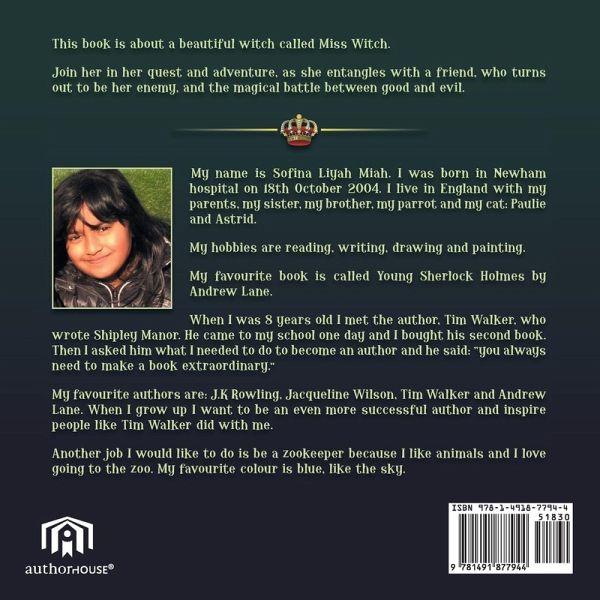 This book is about a beautiful witch called Miss Witch. Join her in her quest and adventure, as she entangles with a friend, who turns out to be her enemy, and the magical battle between good and evil.