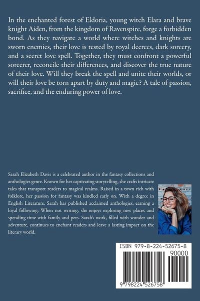 In the enchanted forest of Eldoria, young witch Elara and brave knight Aiden, from the kingdom of Ravenspire, forge a forbidden bond. As they navigate a world where witches and knights are sworn enemies, their love is tested by royal decrees, dark sorcery, and a secret love spell. Together, they must confront a powerful sorcerer, reconcile their differences, and discover the true nature of their love. Will they break the spell and unite their worlds, or will their love be torn apart by duty and magic? A tale of passion, sacrifice, and the enduring power of love.