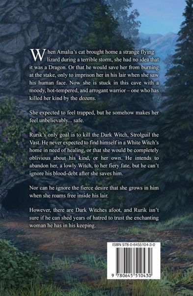 When Amalia's cat brought home a strange flying lizard during a terrible storm, she had no idea that it was a Dragon. Or that he would save her from burning at the stake, only to imprison her in his lair when she saw his human face. Now she is stuck in this cave with a moody, hot-tempered, and arrogant warrior - one who has killed her kind by the dozens. She expected to feel trapped, but he somehow makes her feel unbelievably... safe. Rurik's only goal is to kill the Dark Witch, Strolguil the Vast. He never expected to find himself in a White Witch's home in need of healing, or that she would be completely oblivious about his kind, or her own. He intends to abandon her, a lowly Witch, to her fiery fate, but he can't ignore his blood-debt after she saves him. Nor can he ignore the fierce desire that she grows in him when she roams free inside his lair. However, there are Dark Witches afoot, and Rurik isn't sure if he can shed years of hatred to trust the enchanting woman he has in his keeping. **Author Note: This book contains a tr*gger that may be unsettling for some readers. Please read the w*rning at the beginning of the book.**