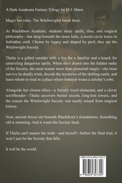 The Witchwright Society by m.j. mann At Blackstone Hollow, magic is memory-and some memories refuse to stay buried. Thalia Gray doesn't belong. An orphan with no pedigree, no patron, and no clear magical specialty, she should have never been admitted to Blackstone's elite academy. But when a sentient sigil brands her hand and the forbidden Spiral begins to awaken across the school, Thalia finds herself at the heart of an unraveling legacy. Whispers haunt the halls. Glyphs change shape when no one's looking. And something old-something sealed beneath the Hollow long ago-is starting to stir. With a sarcastic fox familiar, a secret society of misfit mages, and only fragments of forgotten spells, Thalia must uncover the truth behind the Witchwrights: an ancient Circle erased from the school's history. Because Blackstone doesn't just teach magic. It remembers it. And now it remembers her.