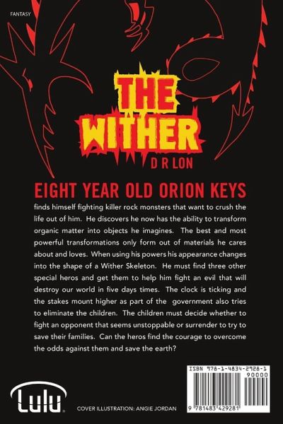 Eight year old Orion Keys finds himself fighting killer rock monsters that want to crush the life out of him. He discovers he now has the ability to transform organic matter into objects he imagines. The best and most powerful transformations only form out of materials he cares about and loves. When using his powers his appearance changes into the shape of a Wither Skeleton. He must find three other special heros and get them to help him fight an evil that will destroy our world in five days times. The clock is ticking and the stakes mount higher as part of the government also tries to eliminate the children. The children must decide whether to fight an opponent that seems unstoppable or surrender to try to save their families. Can the heros find the courage to overcome the odds against them and save the earth?