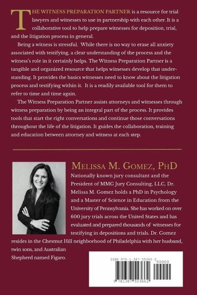 The Witness Preparation Partner, is a resource for trial lawyers and witnesses to use in partnership with each other. It is a collaborative tool to help prepare witnesses for deposition, trial, and the litigation process in general. The Witness Preparation Partner assists attorneys and witnesses by being an integral part of the witness preparation process. It provides tools that start the right conversations and continue those conversations throughout the life of the litigation. It guides the collaboration, training and education between attorney and witness at each step.