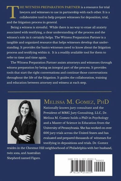 The Witness Preparation Partner, is a resource for trial lawyers and witnesses to use in partnership with each other. It is a collaborative tool to help prepare witnesses for deposition, trial, and the litigation process in general. The Witness Preparation Partner assists attorneys and witnesses by being an integral part of the witness preparation process. It provides tools that start the right conversations and continue those conversations throughout the life of the litigation. It guides the collaboration, training and education between attorney and witness at each step.