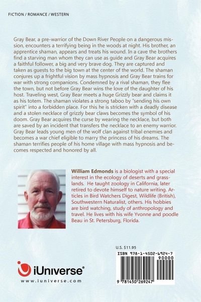 A spooky tale involving American Indians, a shaman of strange powers, a gullible warrior and a gigantic grizzly bear. Authentic Indian lore and animal life of he western prairies. Gray Bear, young warrior of the Missouris, is sent to learn the identity of the raiders who looted his home village on the Missouri River. In the woods at night he is attacked by a mysterious being with too many arms and legs to be human. His brother, an apprentice shaman, appears and treats his wound. In a cave the brothers find a starving man whom they can use as guide. Gray Bear acquires a faithful follower, a big and very brave dog. Soon they are captured by warriors of a kindred people who take them as guests to the big town at the center of the world. The shaman conjures up a frightful vision by mass hypnosis and Gray Bear trains for war with fierce members of his age group. Threatened by a rival shaman, the brothers must flee from the town but not before Gray Bear wins the love of the beautiful daughter of his host. He defeats his assigned executioner, a supposedly invincible giant champion warrior. On the far western prairie Gray Bear meets a huge Grizzly bear and claims it as his totem. The shaman finds the village of the raiders and "sends his spirit" to steal back the sacred bundle of his people from a body on a burial scaffold He also steals a Bear Claw necklace for Gray Bear to wear. For this he is stricken with a mysterious sickness. In the homeward bound canoe he is near death but is restored to health by a mysterious incident in which the necklace is restored to its spirit owner. During a vigil, Gray Bear sees his faithful dog as a spirit wolf. He leads young men of the wolf clan in a successful attack against tribal enemies and becomes a war chief eligible to marry the princess of his dreams. The shaman entertains (terrifies) the members of his home village with mass hypnosis and becomes respected and honored by all.