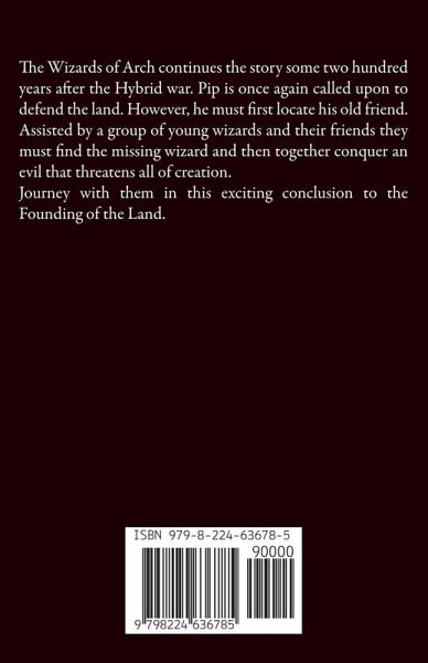 The Wizards of Arch continues the story some two hundred years after the Hybrid war. Pip is once again called upon to defend the land. However, he must first locate his old friend. Assisted by a group of young wizards and their friends they must find the missing wizard and then together conquer an evil that threatens all of creation. Journey with them in this exciting conclusion to the Founding of the Land.