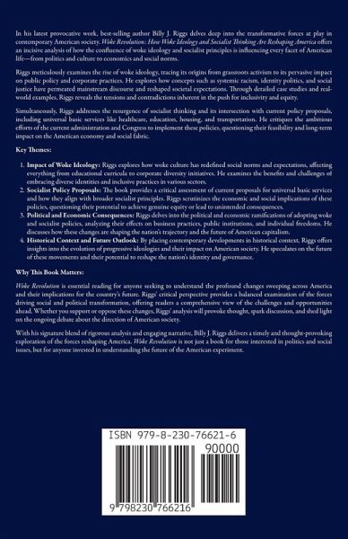 In his latest provocative work, best-selling author Billy J. Riggs delves deep into the transformative forces at play in contemporary American society. Woke Revolution: How Woke Ideology and Socialist Thinking Are Reshaping America offers an incisive analysis of how the confluence of woke ideology and socialist principles is influencing every facet of American life-from politics and culture to economics and social norms. Riggs meticulously examines the rise of woke ideology, tracing its origins from grassroots activism to its pervasive impact on public policy and corporate practices. He explores how concepts such as systemic racism, identity politics, and social justice have permeated mainstream discourse and reshaped societal expectations. Through detailed case studies and real-world examples, Riggs reveals the tensions and contradictions inherent in the push for inclusivity and equity. Simultaneously, Riggs addresses the resurgence of socialist thinking and its intersection with current policy proposals, including universal basic services like healthcare, education, housing, and transportation. He critiques the ambitious efforts of the current administration and Congress to implement these policies, questioning their feasibility and long-term impact on the American economy and social fabric. Key Themes:Impact of Woke Ideology: Riggs explores how woke culture has redefined social norms and expectations, affecting everything from educational curricula to corporate diversity initiatives. He examines the benefits and challenges of embracing diverse identities and inclusive practices in various sectors. Socialist Policy Proposals: The book provides a critical assessment of current proposals for universal basic services and how they align with broader socialist principles. Riggs scrutinizes the economic and social implications of these policies, questioning their potential to achieve genuine equity or lead to unintended consequences. Political and Economic Consequences: Riggs delves into the political and economic ramifications of adopting woke and socialist policies, analyzing their effects on business practices, public institutions, and individual freedoms. He discusses how these changes are shaping the nation's trajectory and the future of American capitalism. Historical Context and Future Outlook: By placing contemporary developments in historical context, Riggs offers insights into the evolution of progressive ideologies and their impact on American society. He speculates on the future of these movements and their potential to reshape the nation's identity and governance. Why This Book Matters: Woke Revolution is essential reading for anyone seeking to understand the profound changes sweeping across America and their implications for the country's future. Riggs' critical perspective provides a balanced examination of the forces driving social and political transformation, offering readers a comprehensive view of the challenges and opportunities ahead. Whether you support or oppose these changes, Riggs' analysis will provoke thought, spark discussion, and shed light on the ongoing debate about the direction of American society. With his signature blend of rigorous analysis and engaging narrative, Billy J. Riggs delivers a timely and thought-provoking exploration of the forces reshaping America. Woke Revolution is not just a book for those interested in politics and social issues, but for anyone invested in understanding the future of the American experiment.