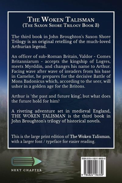 The third book in John Broughton's Saxon Shore Trilogy is an original retelling of the much-loved Arthurian legend. An officer of sub-Roman Britain, Valdor - Comes Britanniarum - accepts the kingship of Logres, meets Myrddin, and changes his name to Arthur. Facing wave after wave of invaders from his base in Camelot, he prepares for the decisive Battle of Mons Badonicus which, according to the seer, will usher in a golden age for the Britons. Arthur is 'the past and future king', but what does the future hold for him? A riveting adventure set in medieval England, THE WOKEN TALISMAN is the third book in John Broughton's trilogy of historical novels. This is the large print edition of The Woken Talisman, with a larger font / typeface for easier reading.