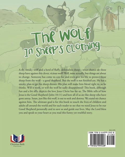 A sly, sneaky wolf and a herd of fluffy, defenseless sheep-what chance do these sheep have against this clever, vicious wolf? Well, none actually, but things are about to change. Someone has come to care for and even give his life to protect these sheep from the wolf-a good shepherd. But the wolf is not finished yet. He has a sneaky plan to get his sheep dinner. His plan will make him blend right in, so he thinks. Will it work, or will the wolf be sadly disappointed? This book, although fun and a bit silly, depicts the love Jesus Christ has for us. The Bible tells of how Jesus is the Good Shepherd (John 10:11) and how all of us are like sheep who have gone astray. Satan, just like this wolf, is out to seek and destroy. We stand no chance against him. The ultimate goal is for this book to touch the lives of children and adults all around the world and for each reader to see that we need Jesus to be our Good Shepherd personally and to save us and guide our lives. May the Lord bless you and speak to your heart as you read this funny yet truthful story.