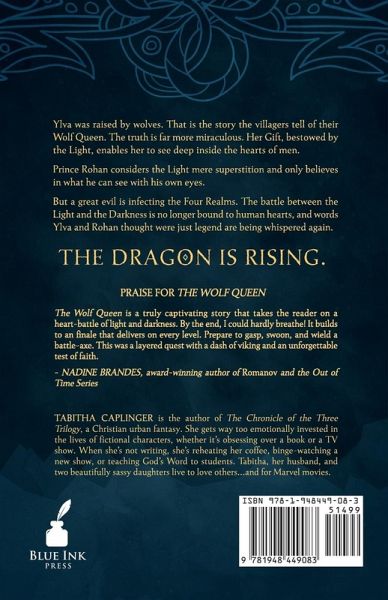 Ylva was raised by wolves. That is the story the villagers tell of their Wolf Queen. The truth is far more miraculous. Her Gift, bestowed by the Light, enables her to see deep inside the hearts of men. Prince Rohan considers the Light mere superstition and only believes in what he can see with his own eyes. But a great evil is infecting the Four Realms. The battle between the Light and the Darkness is no longer bound to human hearts, and words Ylva and Rohan thought were just legend are being whispered again. The dragon is rising.